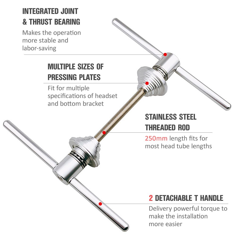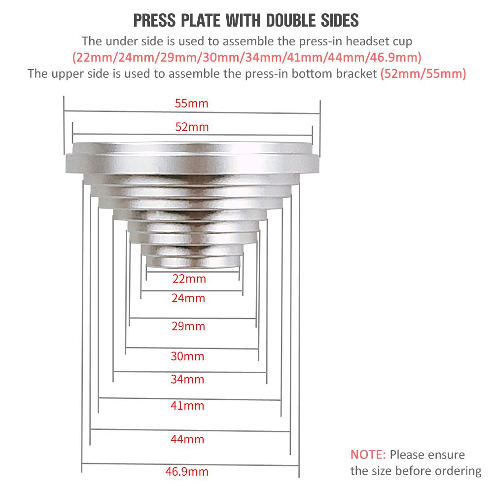 Press plate with double sides,the under side is used to assemble the press-in headset cup,and the upper side is used to assemble the press-in bottom bracket.
