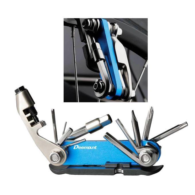14 in 1 multitool kit: chain , allen wrench 1.5 / 2 / 2.5 / 3 / 4 / 5 / 6 / 8 mm, T25 wrench, tire lever, spoke spanner, cross & Slotted screwdrivers.