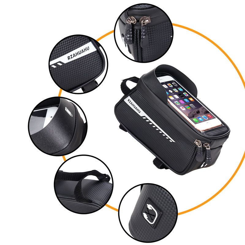 - Different from most Bike Phone Front Frame Bag you see on the market. Our Bike Phone Front Frame Bag is made of high quality waterproof PU leather material,and the interior space is large enough for you to carry many items.It is very convenient for