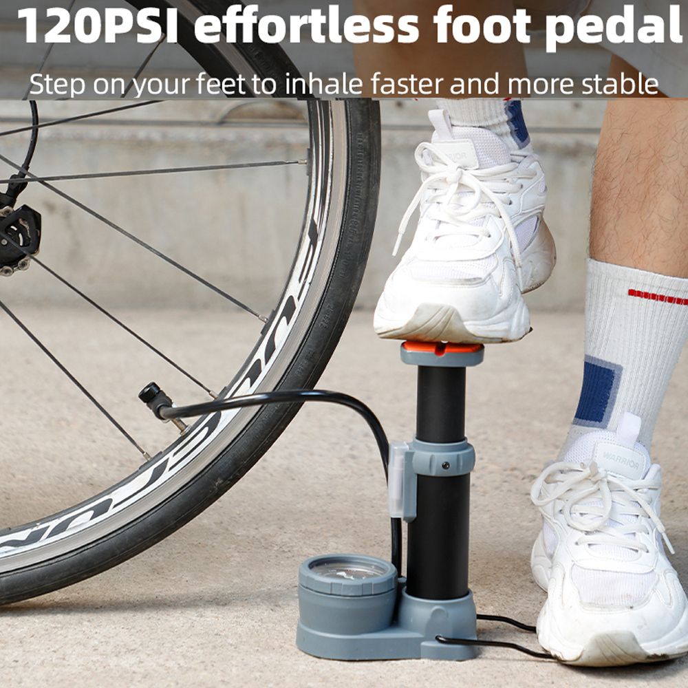 120PSI high-pressure pump, which can flexibly switch between Presta and Schrader nozzles to meet your different pumping needs.