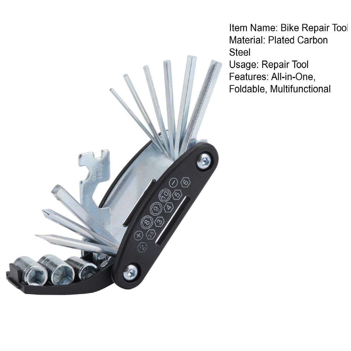 The bike repair tool, the ultimate all-in-one solution for your cycling maintenance needs. this portable tool combines a variety of tools into one compact design, making it easy to carry and perfect for outdoor sports and cycling adventures. with this convenient tool, you can easily solve any bike-related problem and make maintenance a breeze.