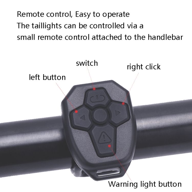 3. The wireless remote control is easy to operate, and the taillight can be controlled by a small remote control fixed on the handlebar