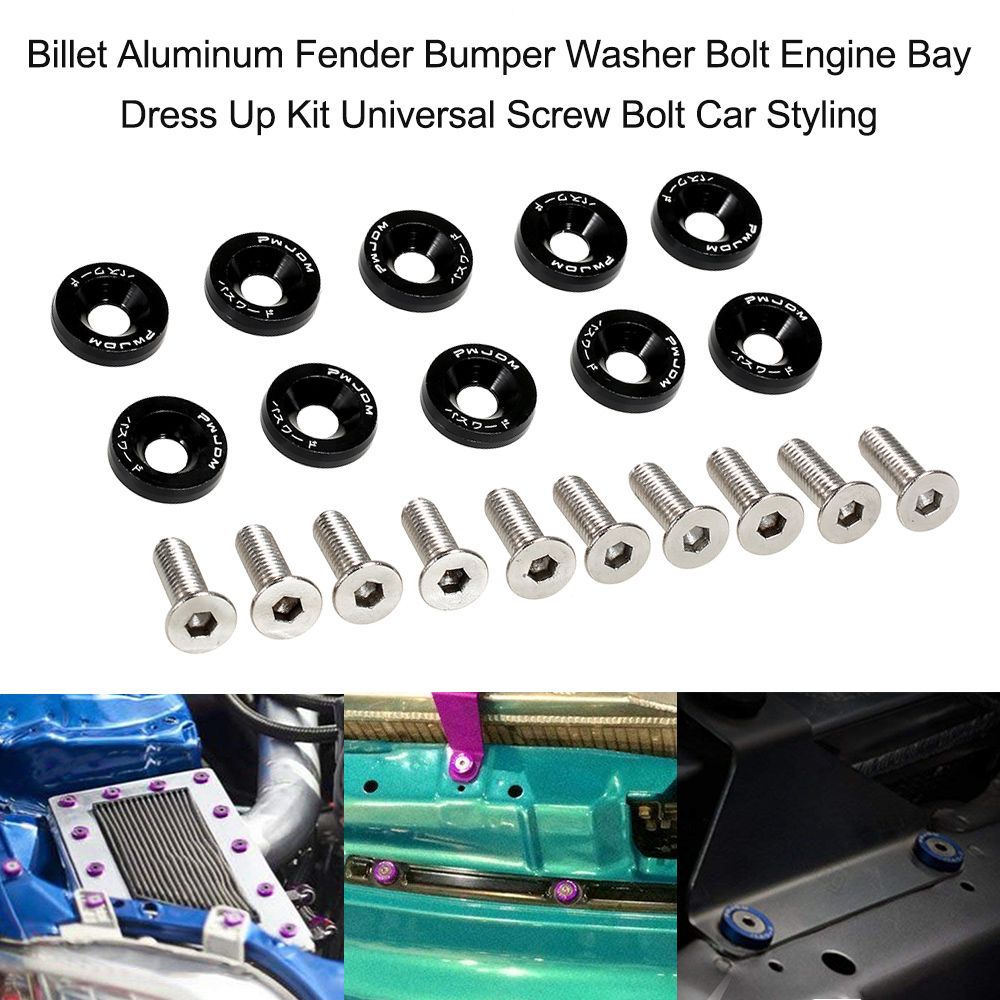 The kit includes 10 washers and 10 screws, it fits nearly all 10mm bolts on the vehicle including fenders, bumpers, hoods, engine bay, headlights and license plate.