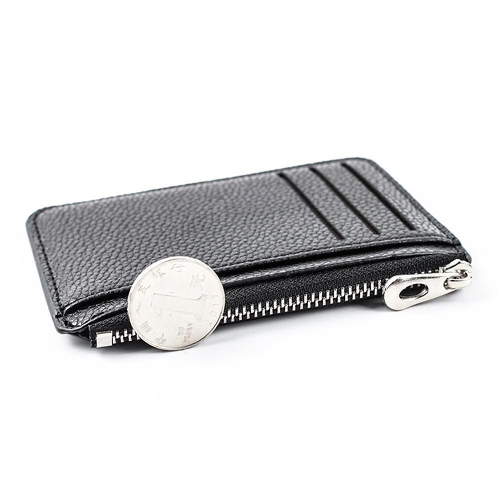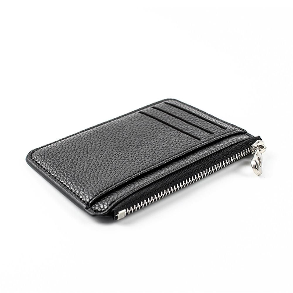 1X Billetera delgada de cuero sintetico para mujer tarjetero de cuero Unisex con cremallera funda para tarjetas de visita tarjetero