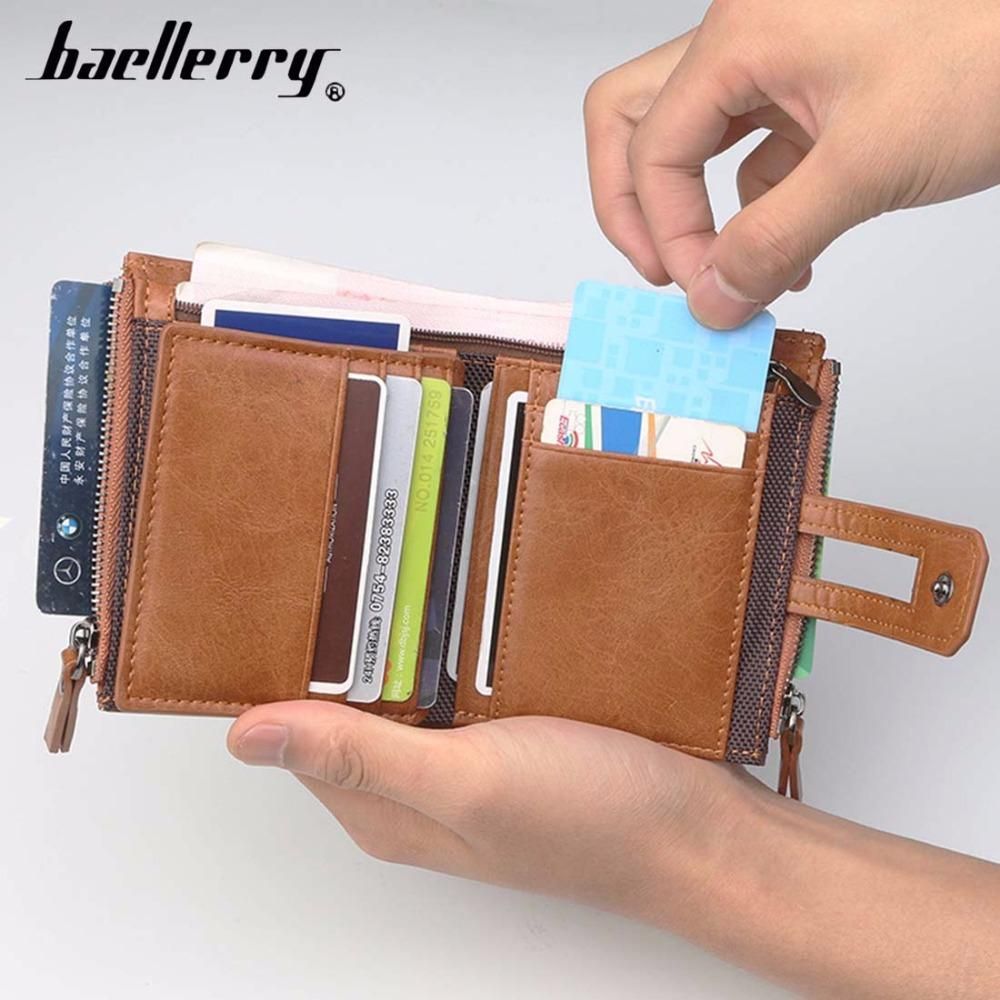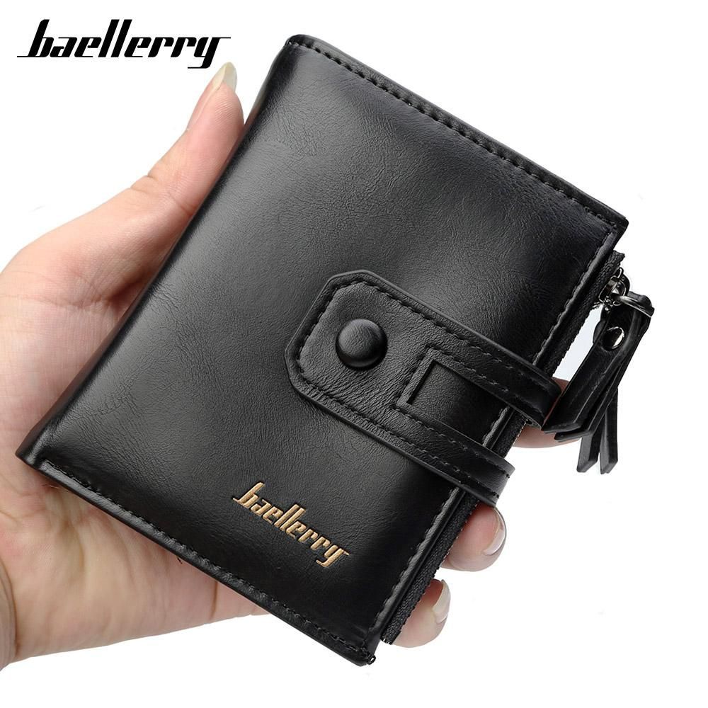 1X Billeteras de cuero con grabado de nombre para hombre Tarjetero con doble cremallera monedero corto bolsillo para monedas Vintage alta calidad