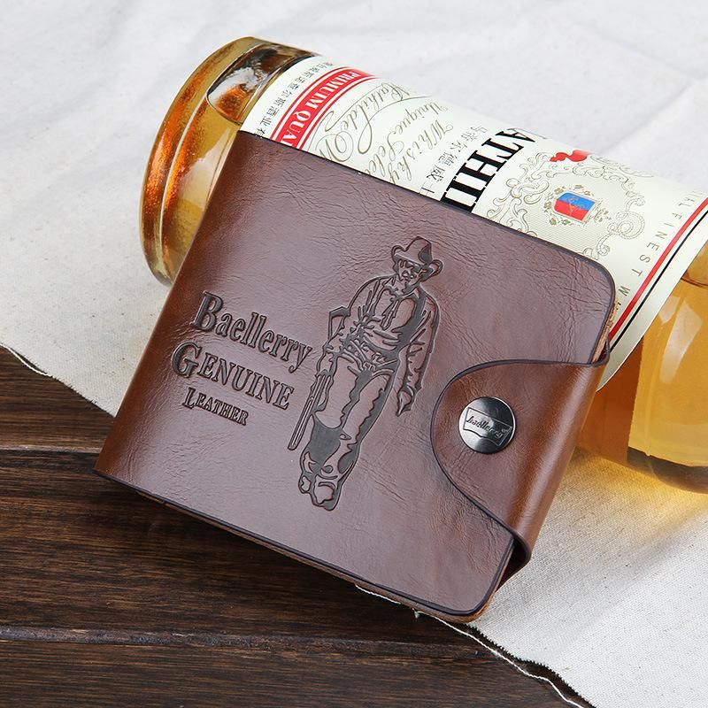 1X Billeteras Vintage de cuero para hombre cartera pequena hueca con broche bolso de mano tarjetero bolsillo para monedas