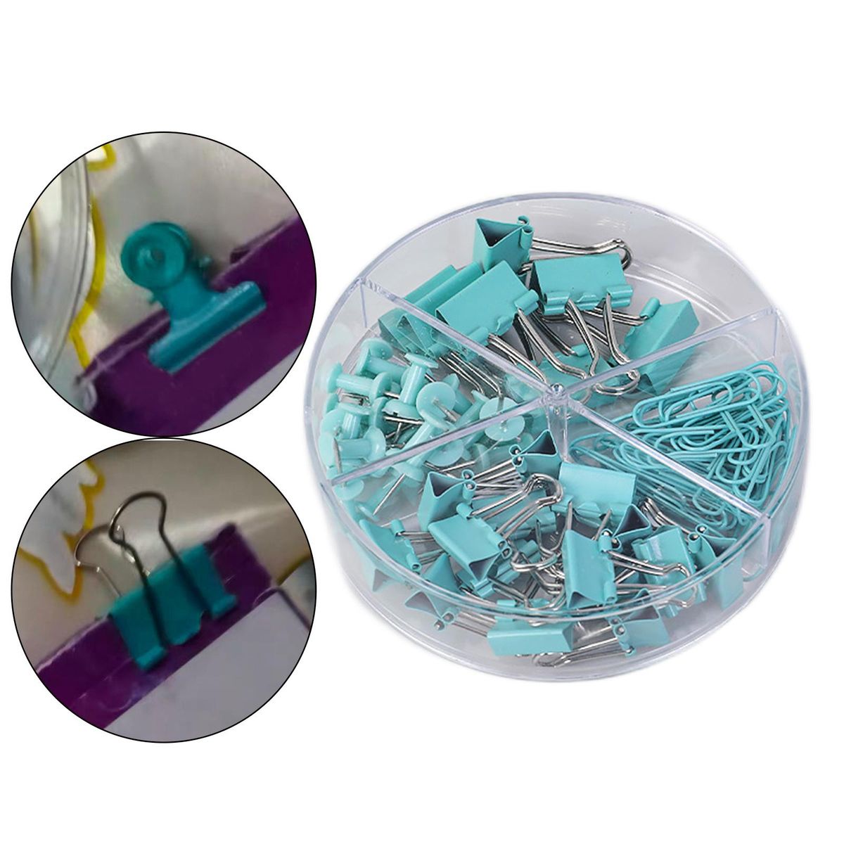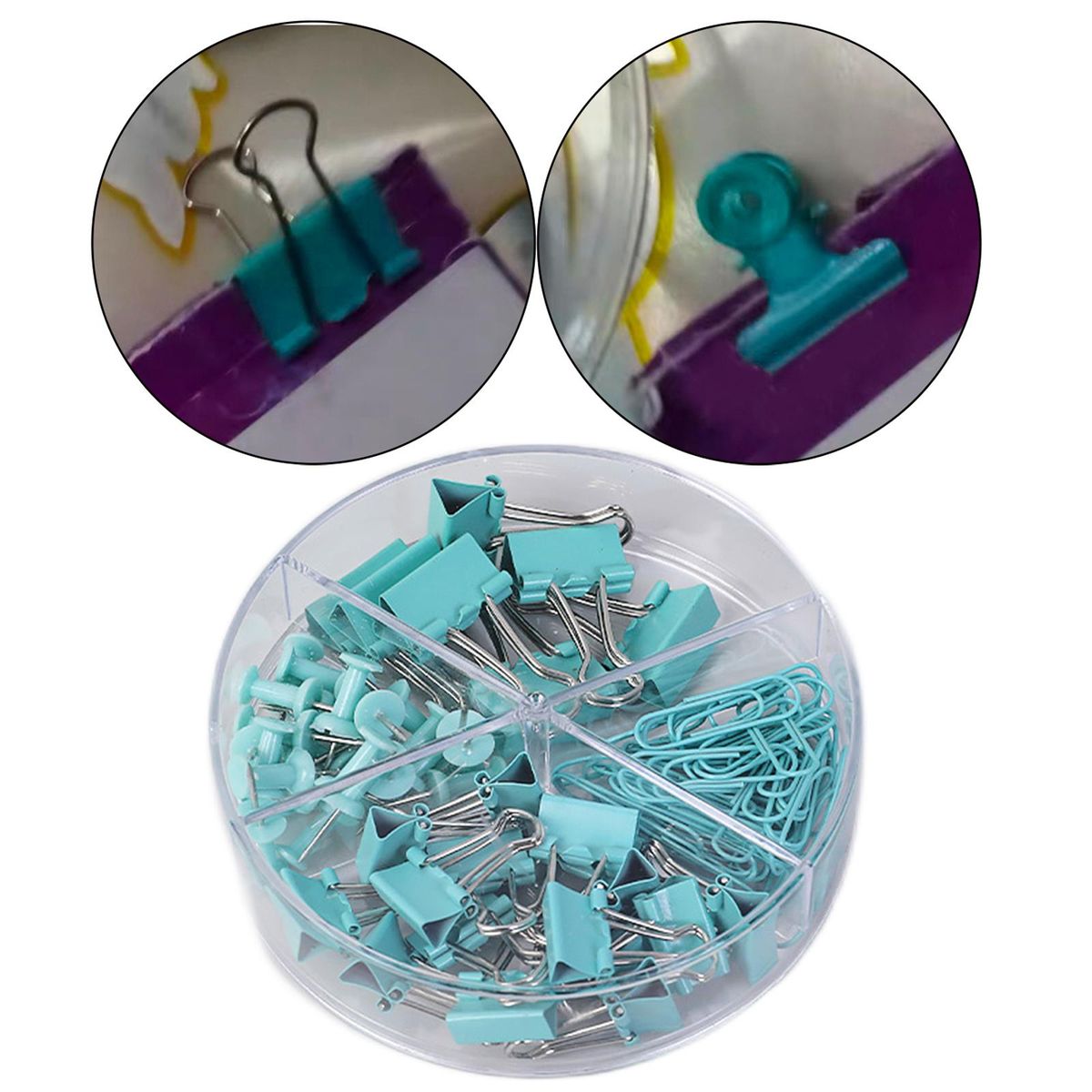Binder Clips;Binder Clips and Paper Clips Push Pins Tacks Set;Office Clips Kits with Separately Stored Box;multi-kind binder clips kits with organize box;paper clips long tail clip push pins binder clips;thumbtacks paper clips set for Office School Home