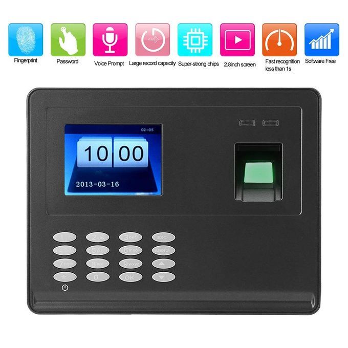 - This attendance machine with 2.4 inch LCD screen adopts advanced fingerprint identification technology, which effectively solves the fingerprint identification problems caused by fingerprint obscurity or finger injury