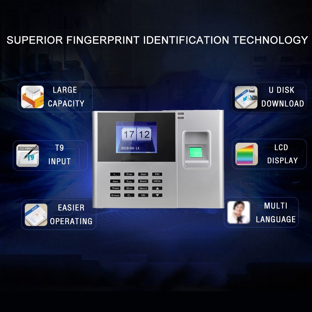 This machine is designed for checking in attendance by using fingerprint and password and suitable for office, factory, hotel, school, restaurant, retail store, hospital.