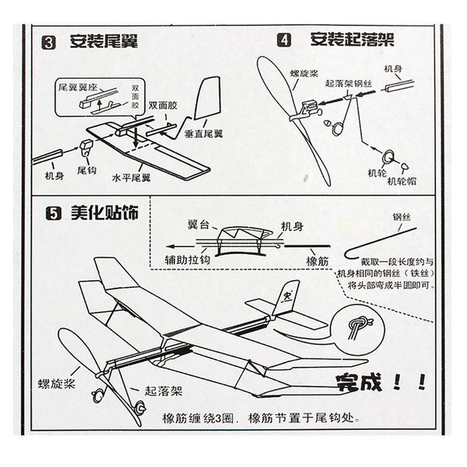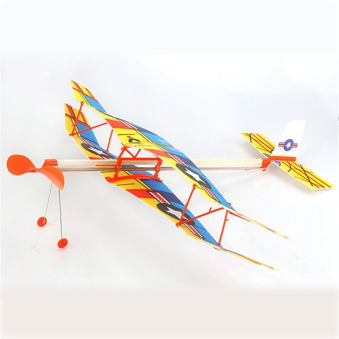 Biplane Glider Thunderbird Rubber Band Power Plane Helicopter Model-Multicolor-