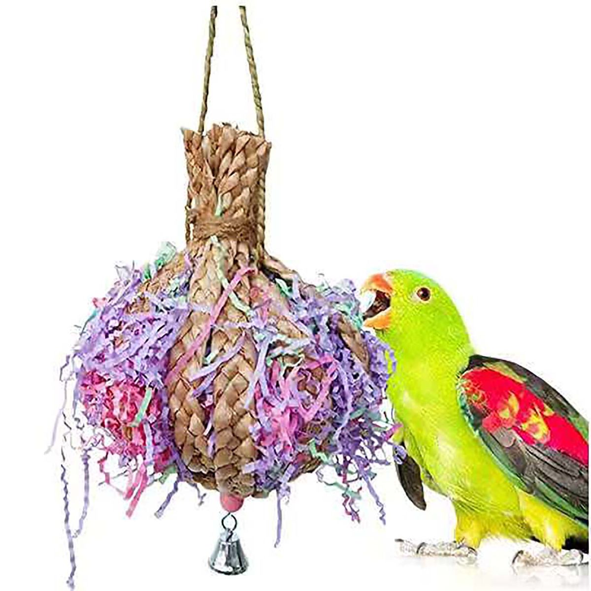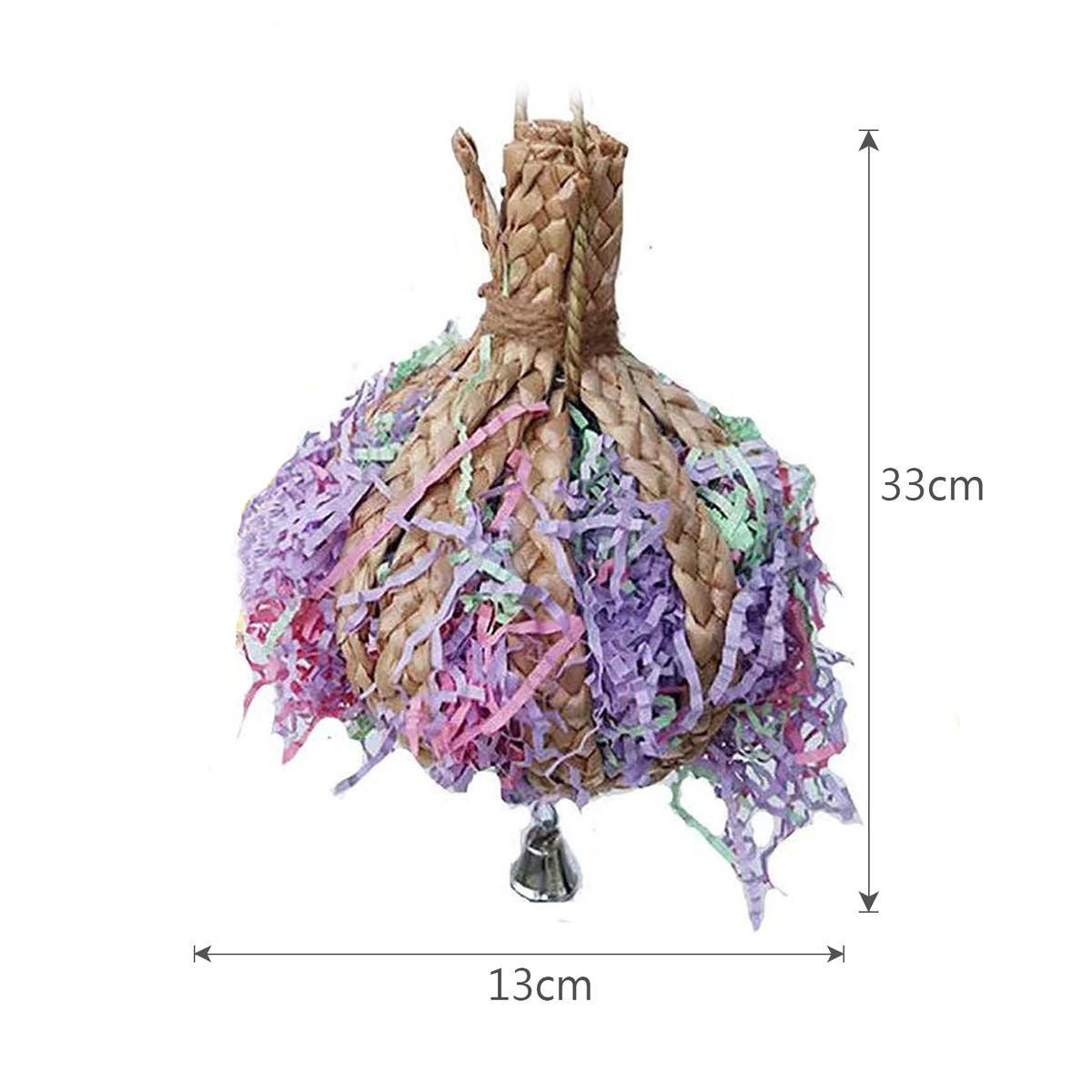 *Product Details: With colored paper silk and the sound of the bell, your bird will love it. This bird toy can bring different fun to the bird, exercise its responsiveness, and chewing ability, can care for its teeth, and strengthen muscles, and it\'s not easy to get tired. Lightweight ensures parrots wouldn\'t be hurt.
