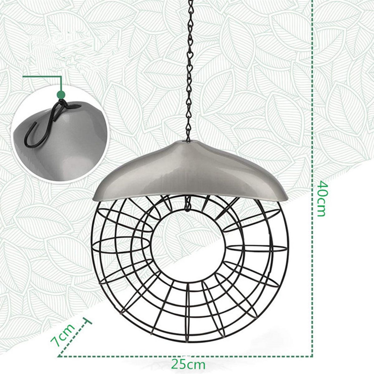 The diameter of the bird feeder is 25cm, and the height is 7cm.