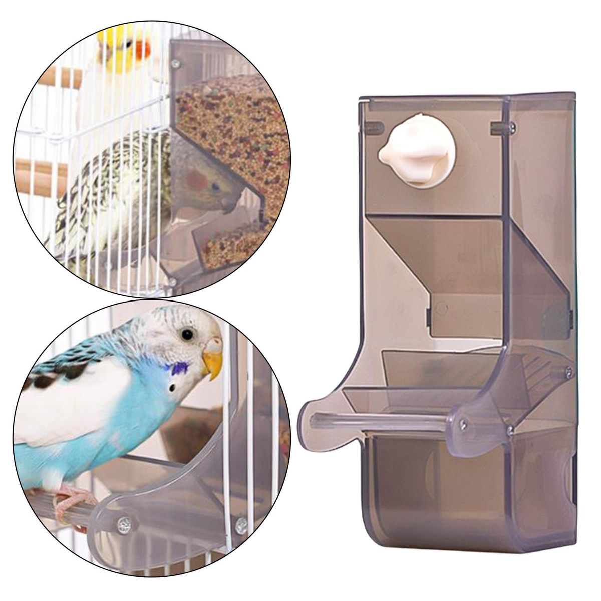No Mess and No Waste - Your bird enters the pet bird feeder and eats, leaving hulls and uneaten behind in the trough like compartment below. Save that didn't end up soiled on the floor, underneath the grate or outside of the cage.Unique Design - Automatically feeding, save your time and will not let your pet starve when you are out for work. It comes with clear acrylic bird perch that makes bird comfortable stands during food time.Durable and Transparent - The no mess bird feeder for cage is made with high quality plastic, durable, sturdy and eco-friendly. Transparent container, convenient for your to see the inside and refill in time.Easy to Install - Automatic parrot feeders is easy and convenient to assemble it by yourself. Easy to fix to birds cage. Perfect for all small birds such as parakeets, starlings, mynah, lovebirds, cockatiels, canaries, small conures and other similarly sized birds.