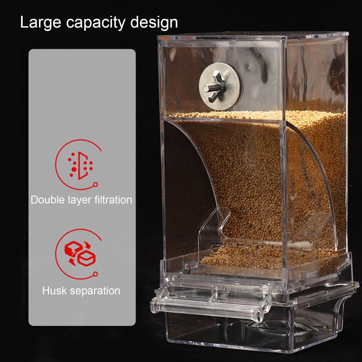 With its semi-enclosed structure, this feeder is anti-swing and splash-proof, ensuring that food stays in place and minimizing mess. the automatic feeding feature ensures a constant supply of food for your birds. additionally, the bird perch on the outside makes it easier for birds to access their food.
