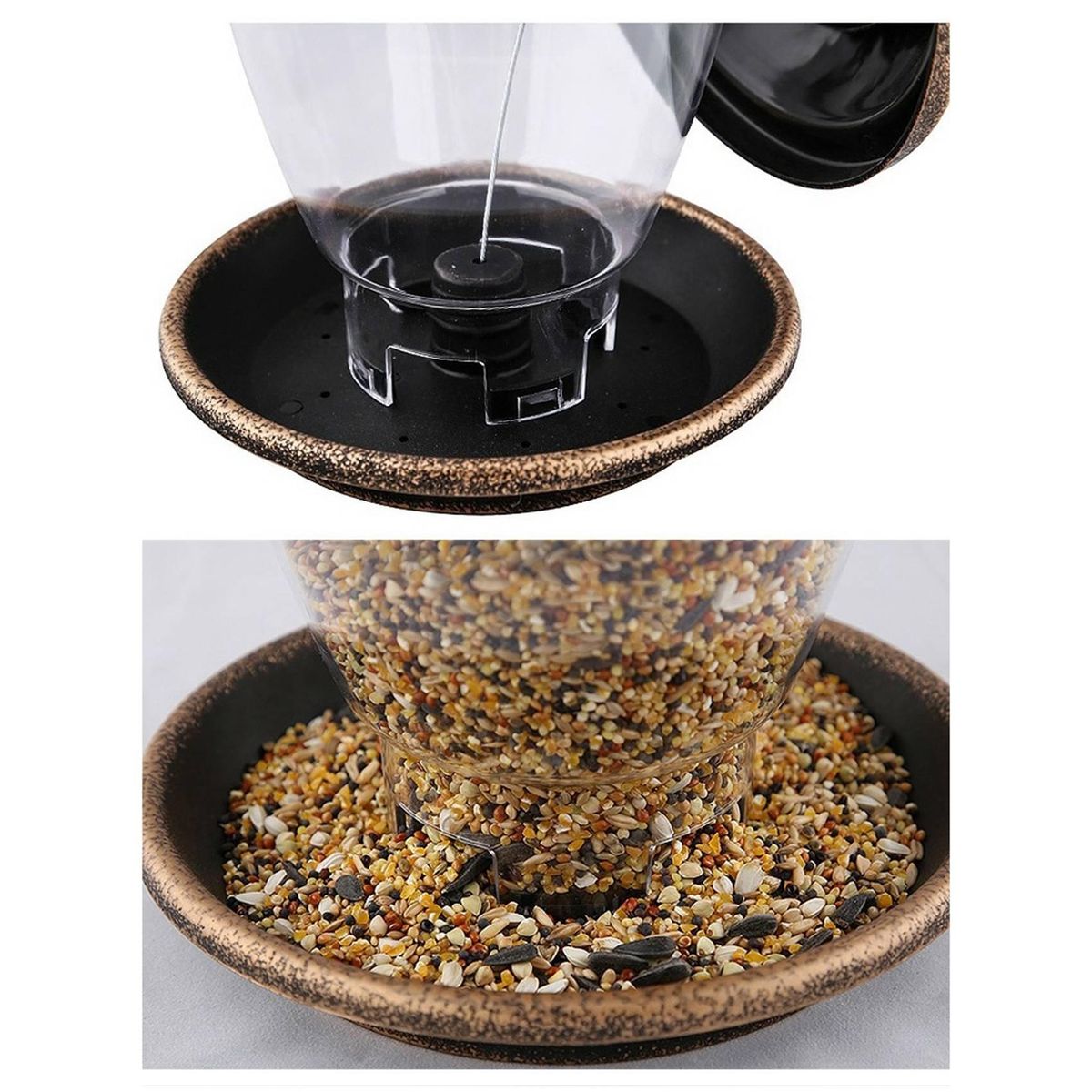 [Easy to fill and clean]The hierarchical roof has an inverted card slot, which can be rotated to facilitate adding grain feed and easy to clean.