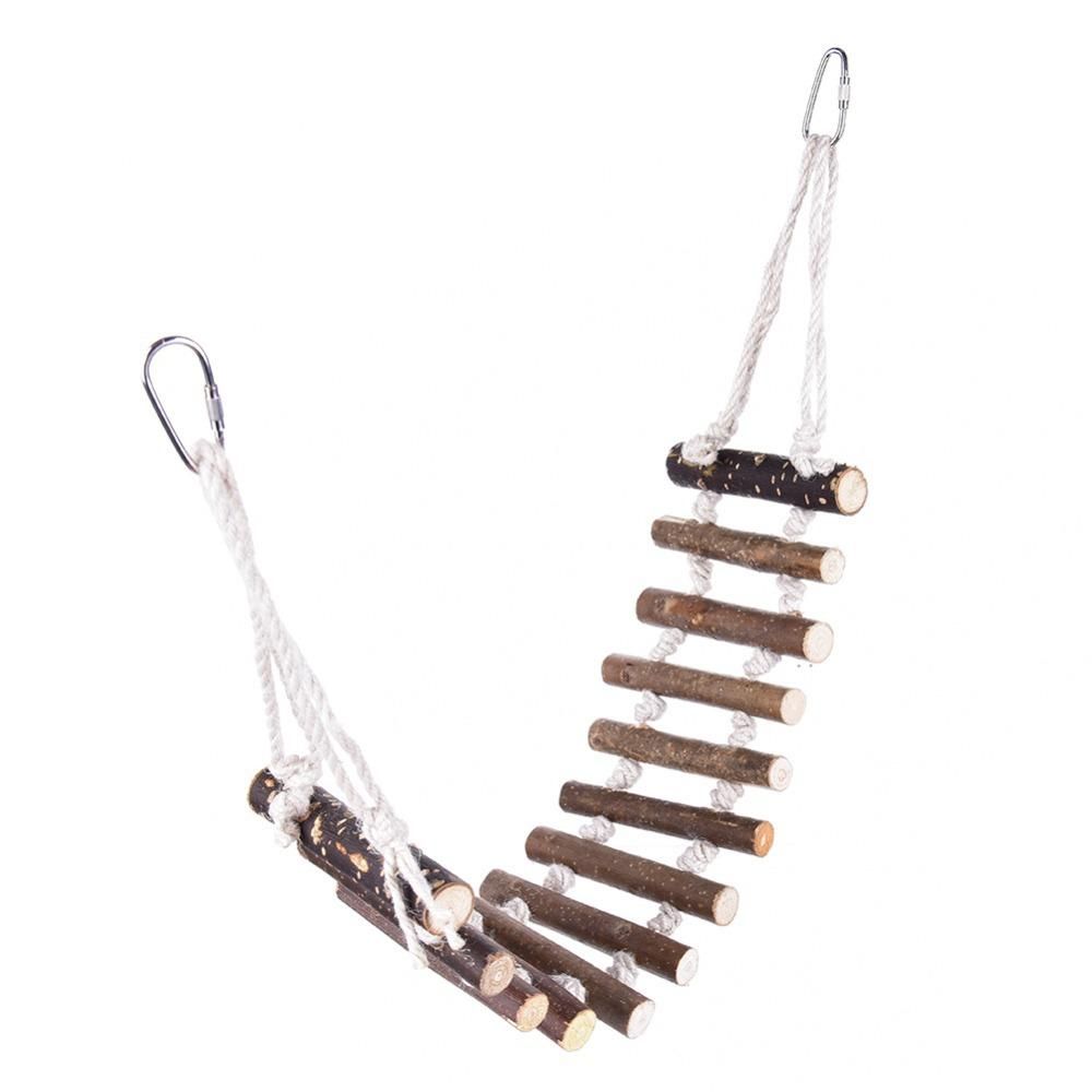 Bird Ladder Bridge Helps Birds With Wood And Edible1.DEVELOP BIRDS BALANCE--- The hanging rope ladder bridge encourages birds to climb, play and hop from rung to rung. This will help develop their balance abilities and achieve optimal foot health.