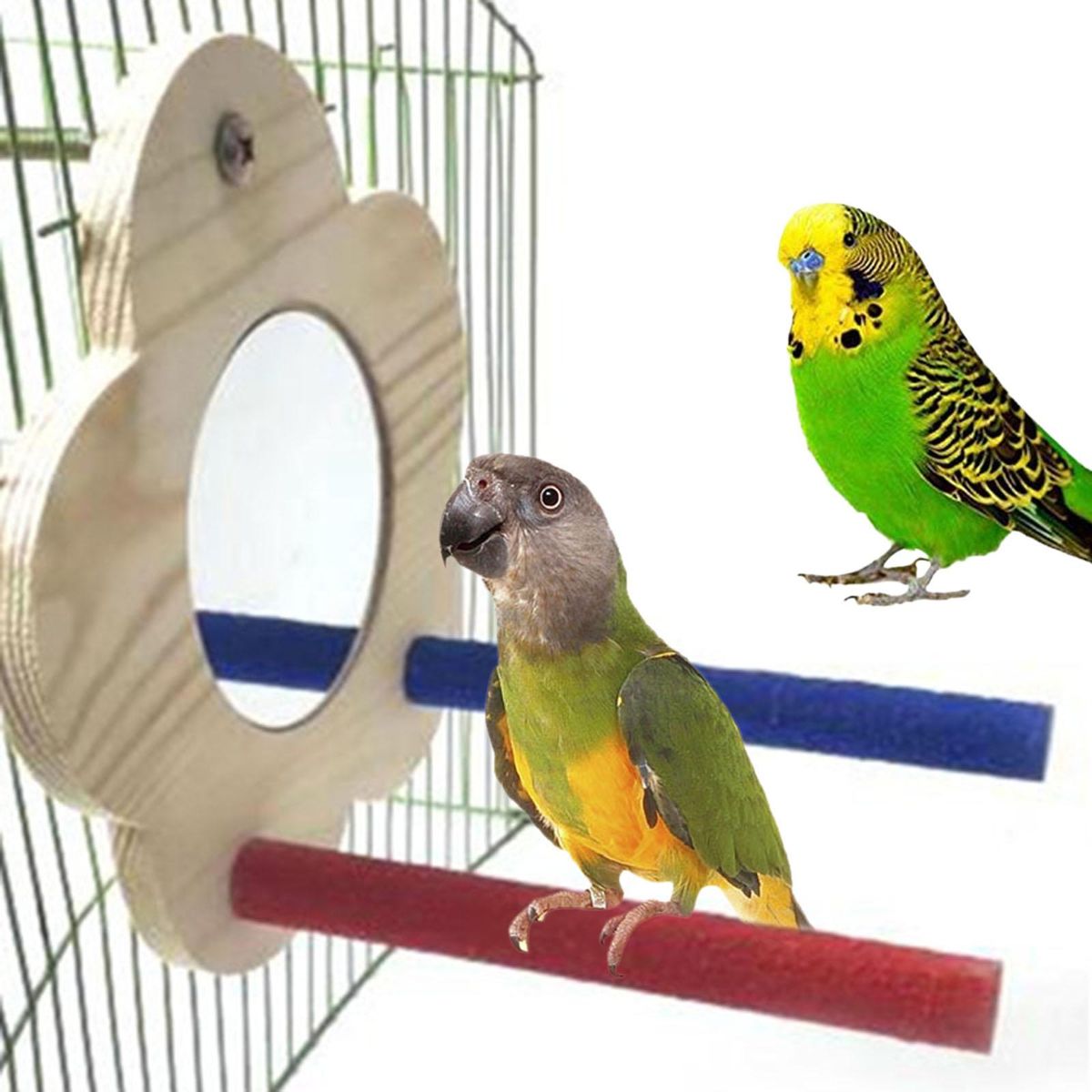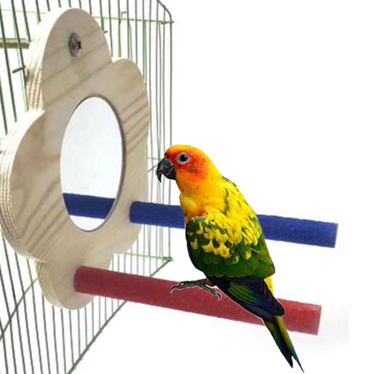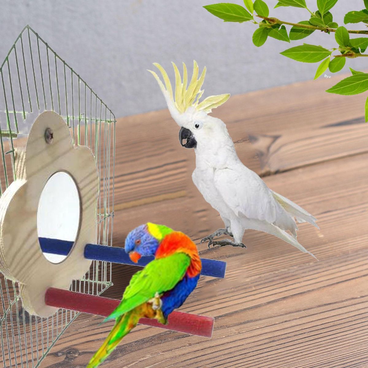 Parrot Wooden Platform: Enough space provides a enjoyable habitat for parrots in cage when they stand or have rest on it. with this bird mirror, your bird can appreciate itself while eating or playing,satisfy the curiosity and beauty of birds.