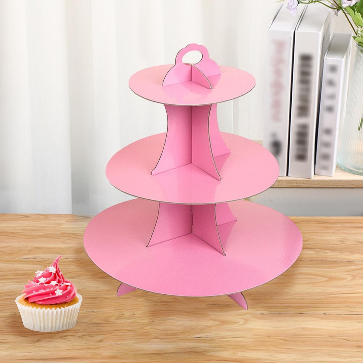 Made of the thick paper material is used to create a three-layer stable structure, making the cardboard cake stand more stable and more durable. The cupcake stand dessert plates are easy to be crooked after assembled, will stay and hold food firmly.