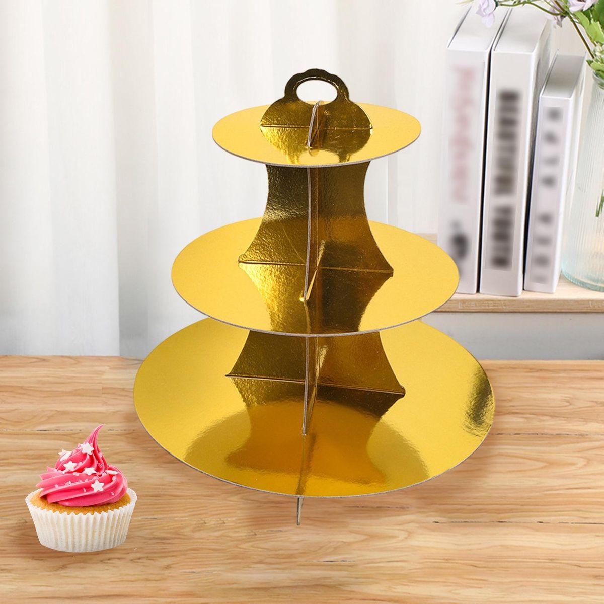 Made of the thick paper material is used to create a three-layer stable structure, making the cardboard cake stand more stable and more durable. The cupcake stand dessert plates are easy to be crooked after assembled, will stay and hold food firmly.