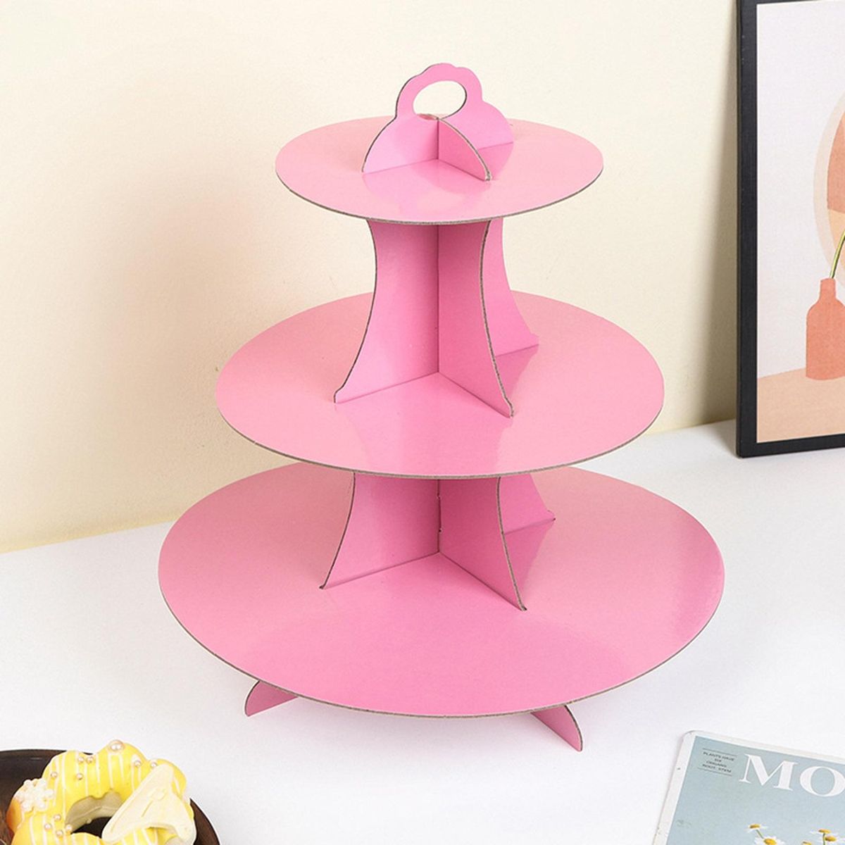 Made of the thick paper material is used to create a three-layer stable structure, making the cardboard cake stand more stable and more durable. The cupcake stand dessert plates are easy to be crooked after assembled, will stay and hold food firmly.