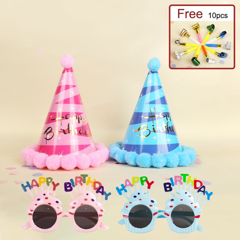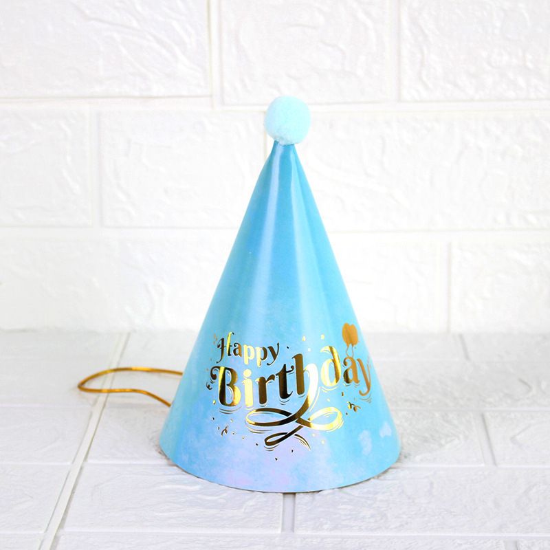 1X Birthday Party Hats Paper Cone Felt Pompoms Art Craft Kids Adults Party Costume Accessories Assorted Colors S00958