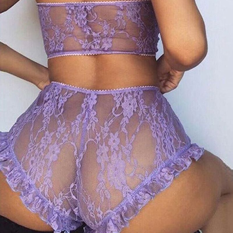 1X BKLD 2019 New Fashion Lace Sets Short Sheer Sexy Mesh Two Piece Sets Women Off Shoulder Crop Tops And Ruffle Shorts Suits Ladies