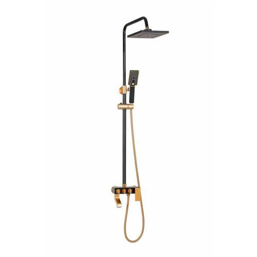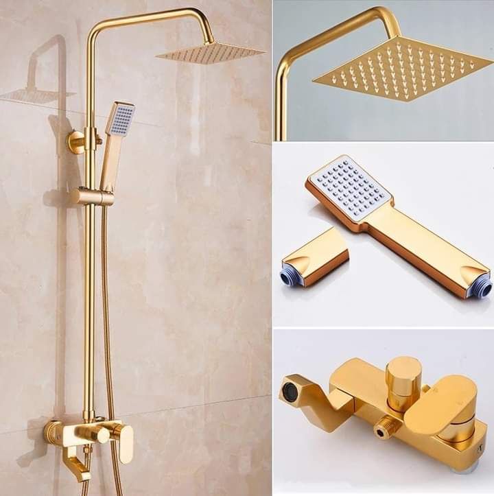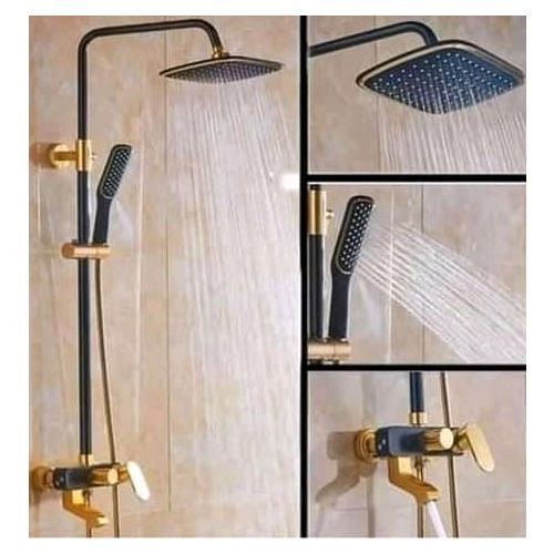 Black and GoldThis is a top quality bathroom standing shower for use during bathing. This bathroom standing shower is unique in our series of bathroom standing shower designs due to unmatched pleasurable bathing experience. It has shower head, pressing shower, and hand shower, mixer for hot and cold water supply, down tap.
