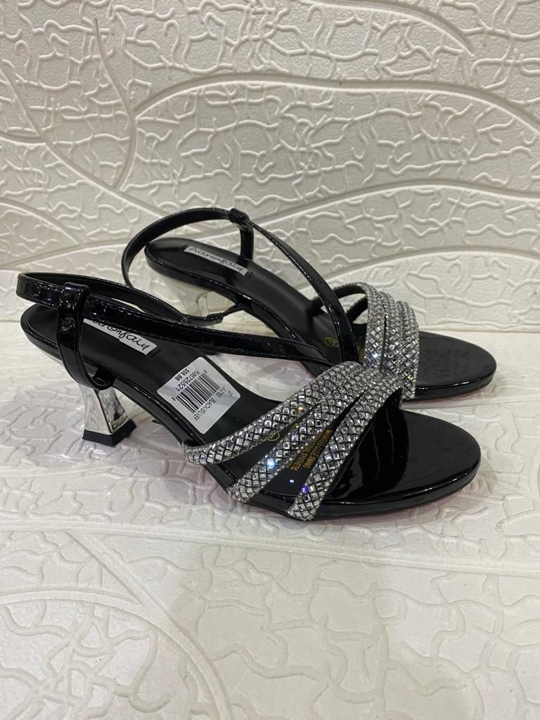 Buy Black And Silver Strap Sandal Low Classic Heels in Nigeria