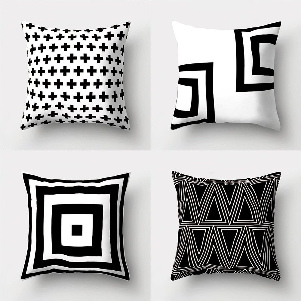 Features: Black and White Geometric Pattern, Square Shape, Sofa Decoration, Simple Design