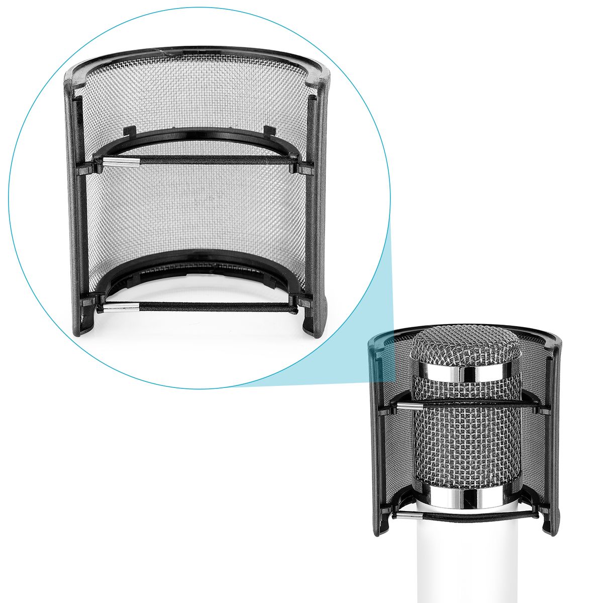 Features elastic rubber bands. Easy to mount up and take down from the mesh head of the microphone