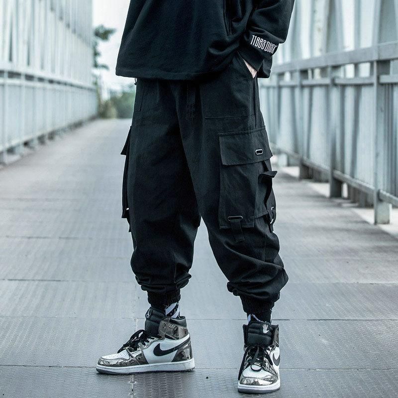 1X Pantalones bombachos negros para hombre ropa de calle de Hip-Hop informales con bolsillos Otono Harajuku con multiples bolsillos 2021
