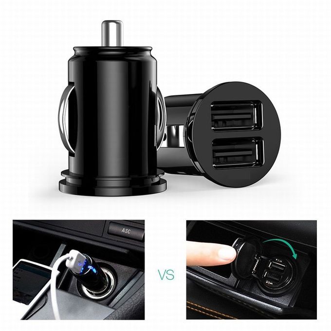 Black Car Truck Dual 2 Port USB Mini Charger Adapter For iPhone 6 7 8 Plus X Samsung Galaxy S8 S7 S6 edge Redmi 3S 4A Note 4X Specification: 100% & good quality Compatible with all USB charging cable (Cable NOT included) Ultra compact, slightly smaller than your thumb Simultaneously charge two devices Mini size & beautiful design Package included: 1pc x Mini Dual USB Car Charger Adapter