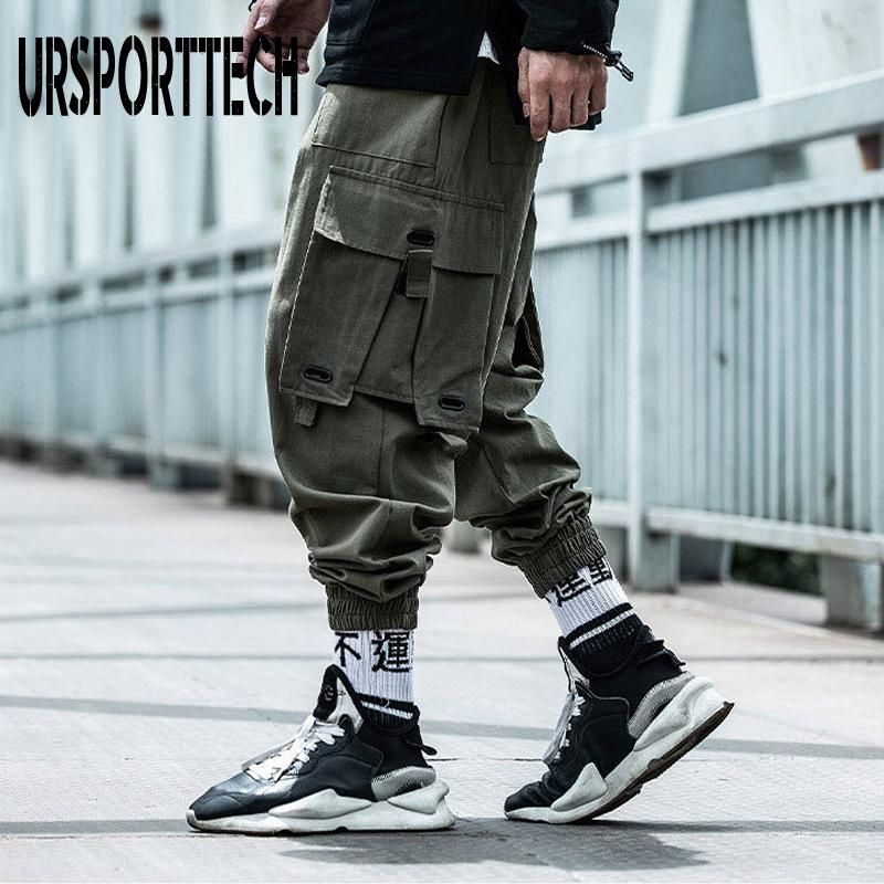 URSPORTTECH 2020 pantalones negros Cargo hombres Hip Hop otono Harem pantalon Streetwear Harajuku Jogger sweatpants pantalones de algodon pantalones de hombre