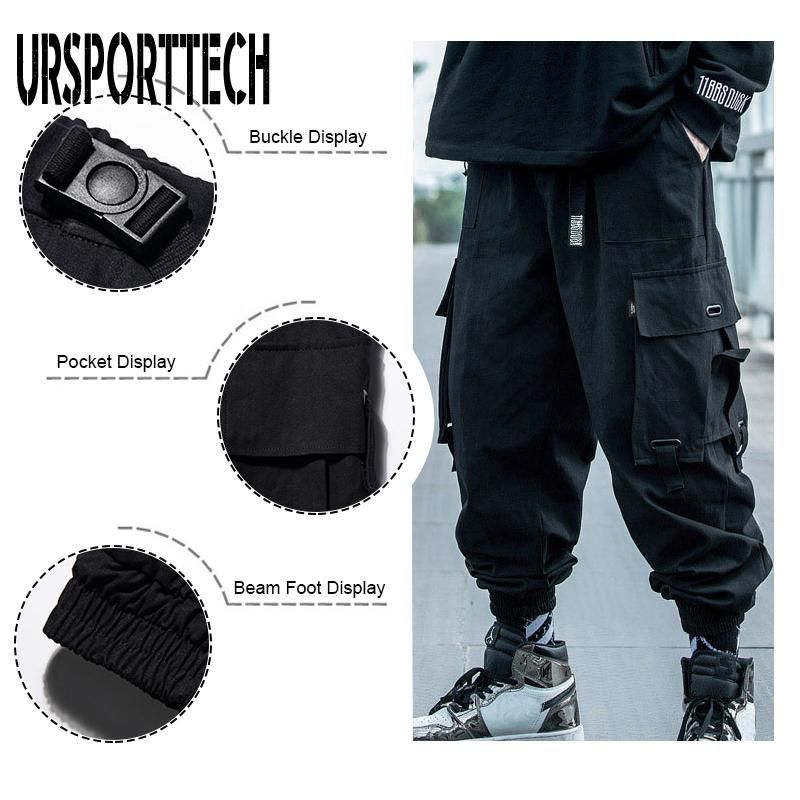 URSPORTTECH-pantalones Cargo negros para hombre, ropa de calle haren de Hip-Hop, de chandal, Harajuku, de algodon, 2020