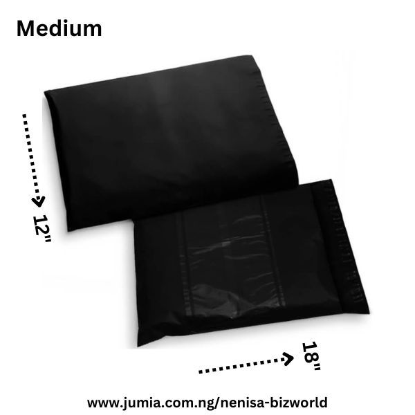 Tamper proof and self-adhesive courier bags / nylons, mailing bags or poly-mailer Shipping bags are widely used by e-commerce business, courier & logistics companies and other businesses. It has a black outer and black inner sides with an invoice pocket, to easily slip in your waybill details or Invoice. Colour is black. Size is Medium, 30x48cm, 12/18 Inches (A3). Package quantity is 500 pieces (pcs).