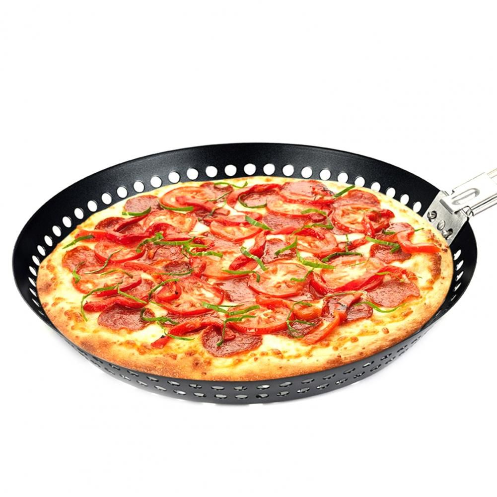 1X Black Durable Modern Frying Duck And Chicken Leg Pizza Making Pot Pan Portable Baking Outdoor Camping Grill Tray Barbecues