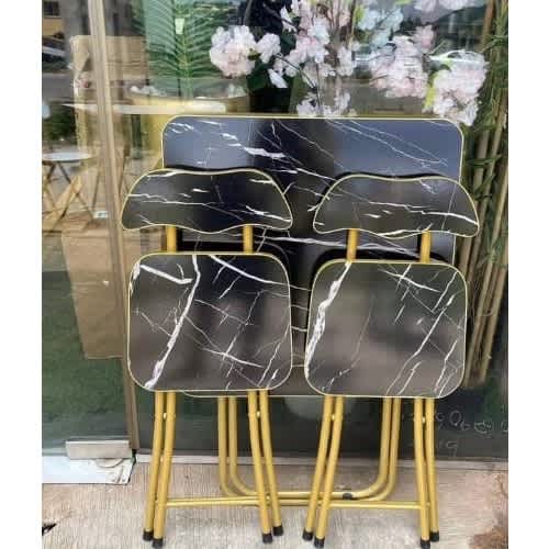 Buy Black Faux Marble Foldable Table And 2 Chairs Square in Nigeria