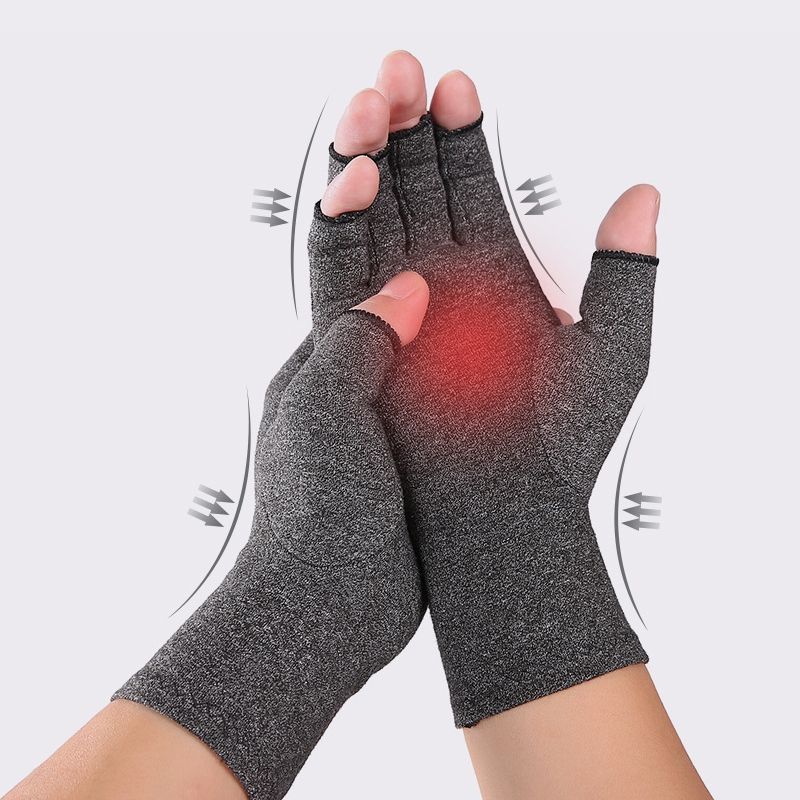 Black Fiber A Pair Sports Breathable Health Care Half Finger Gloves Rehabilitation Training Arthritis Pressure Gloves, Size:L