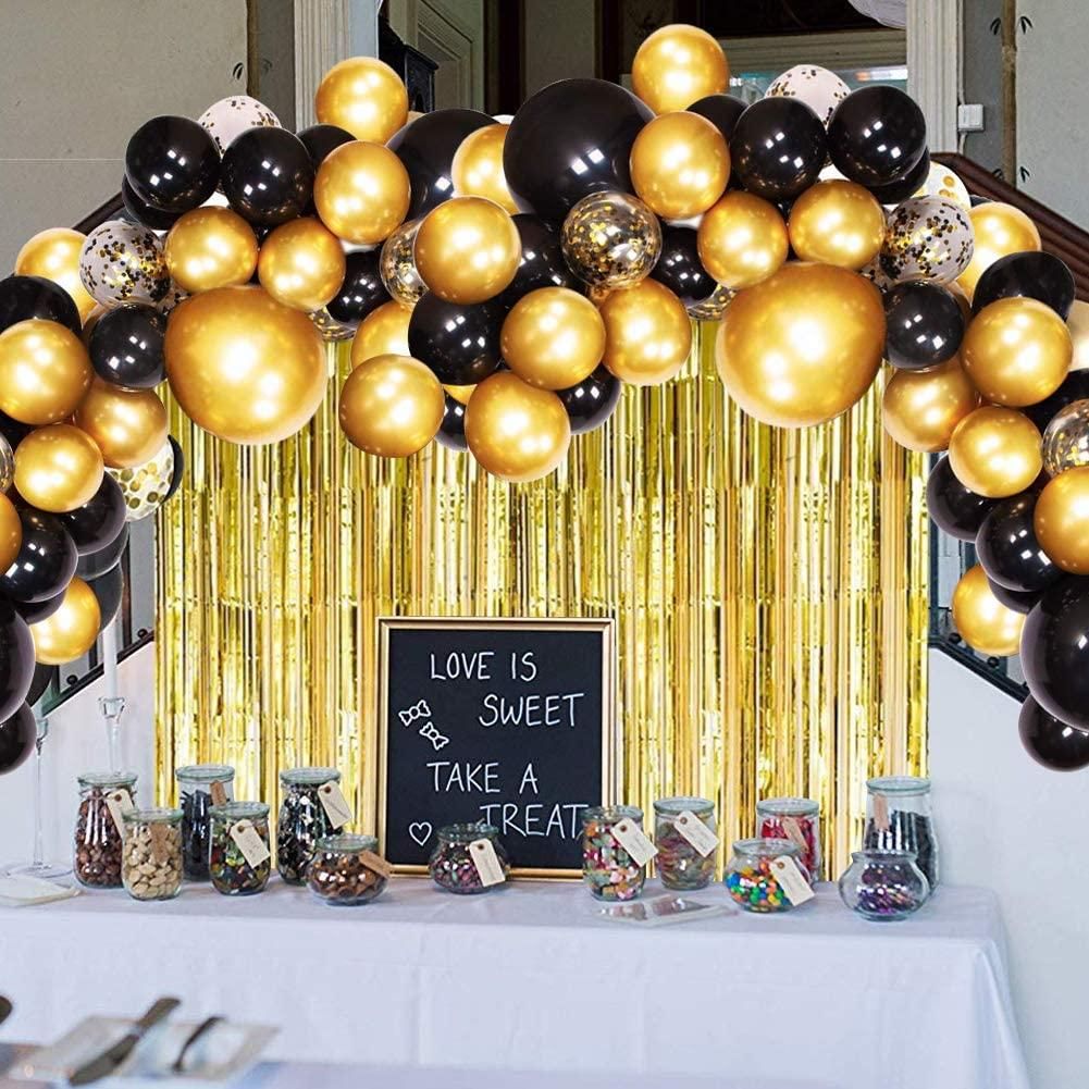 Wide Application: This black and gold balloon garland strip kit with tinsel curtain are perfect for birthday, wedding, anniversary, engagement, graduation, Christmas, store opening, corporate events, photo shoots and any special activity.Decorate the party at home or anywhere as a photo booth backdrop and create lasting memories.