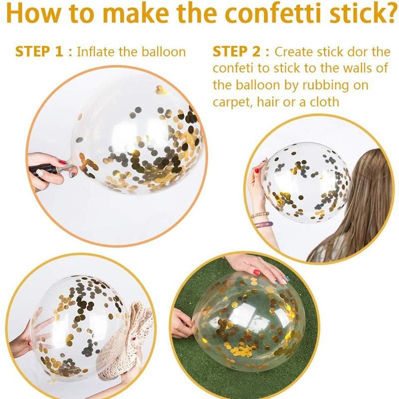 WARM TIPS: Please gently rub the confetti balloon on the dry towel, carpet or your hair to get the static electricity, then shake it slowly to make these pieces stick on the sides of the balloon. Please don't inflate all the balloons over 90% to avoid popping. Please kindly note that avoid sunburn, overheat, pointed object and excessive friction