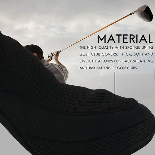 The following is the detailed introduction about our products: ( Material ) - The high-quality with sponge lining golf club covers, thick, soft and stretchy allows for easy sheathing and unsheathing of golf clubs