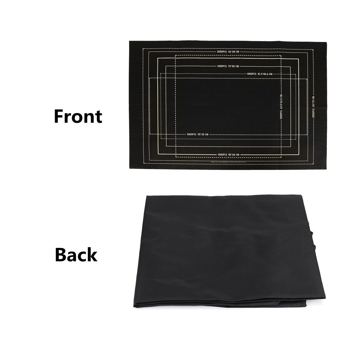 Felt Puzzle Storage MatFeatures:-The of mat helps for easy sorting and contrast without confusion.-High-end material accessories.-The dashed and solid lines are clear at a glance.Specification::BlackMaterial: FeltSize: about 31x47 inch[Conversion: 1cm=0.3937 inch, 1inch=2.54 cm]For up to 2000 pieces puzzle.Package Included:1 * Felt Mat1 * Storage Bag1 * Inflator3 * Fixing Bands1 * Inflatable Tube(Warm tips:Puzzles Not included.)Note:-Due to different producing batches, product details might be a little different. If you minding the difference, please buy it carefully.-Please allow 1-3CM differs due to manual measurement.-Due to the different display and different light, the picture may not reflect the actual of the item. Thanks for your understanding.