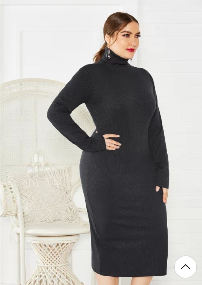 Buy Black Midi Turtleneck Long Sleeve Gown in Nigeria