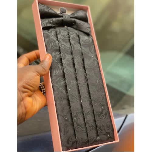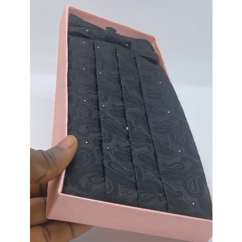 This is a set of exquisite clothing accessories, designed for noble gentlemen. A cummerbund set is often regarded as a symbol of style worn to suit special occasions. Its symbolic importance as part of your fashion combination cannot be over-emphasized. Simply put, a cummerbund set is the finishing touch for any classic ensemble.