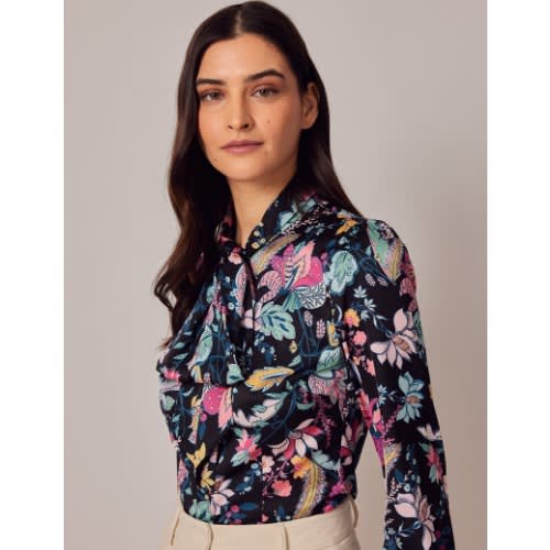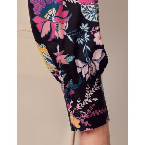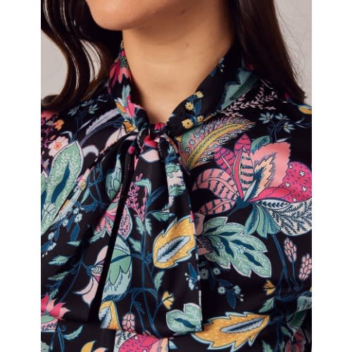 Buy Black & Pink Floral Tapestry Pussy Bow Blouse in Nigeria