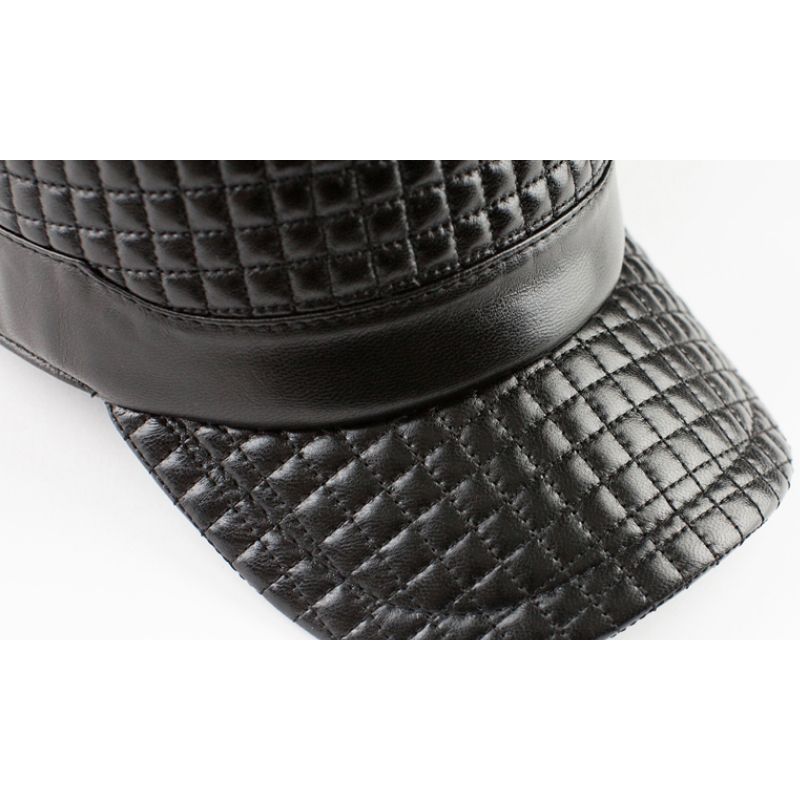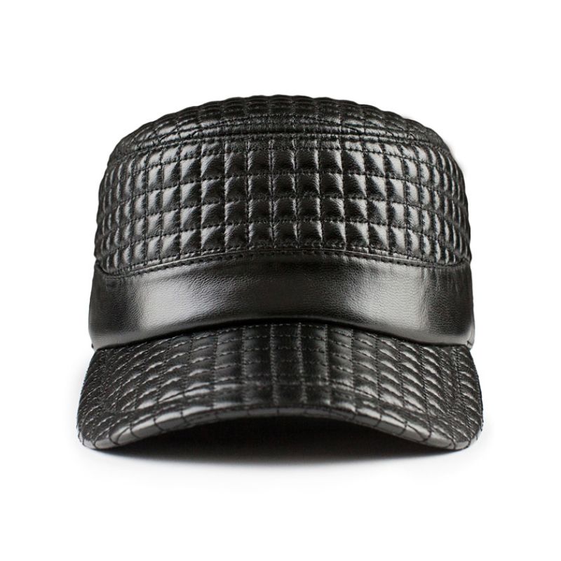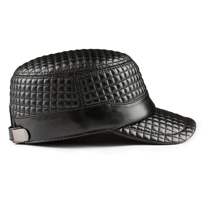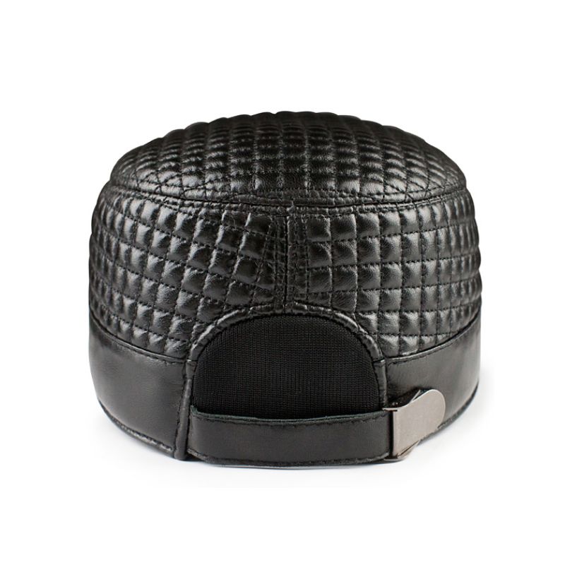 1X New 2022 Black Plaid Women's Vintage ary Genuine Leather Cap Fashion Flat Real Sheepskin Hats For Mem Woman