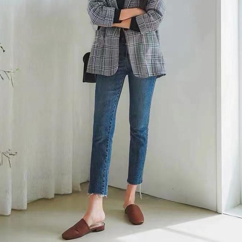 Buy Black raw edge small straight tube jeans for women in the autumn and winter of 2022, new high in Nigeria