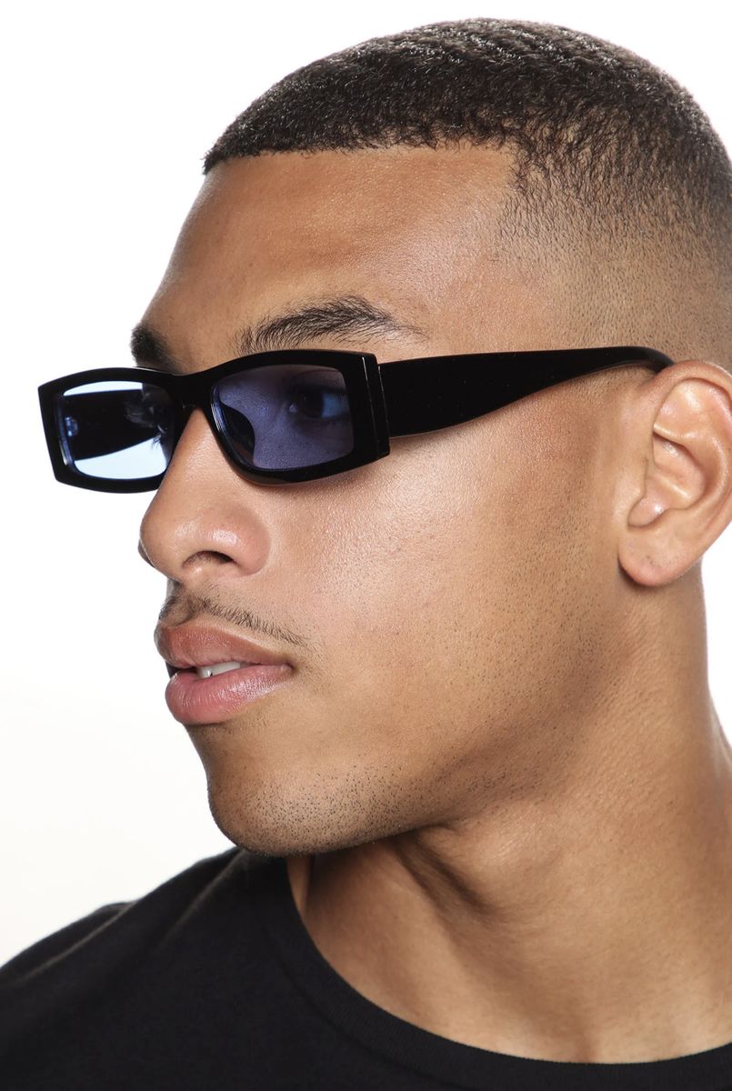 Shape: Rectangular Frame with Blue Colored Lens
