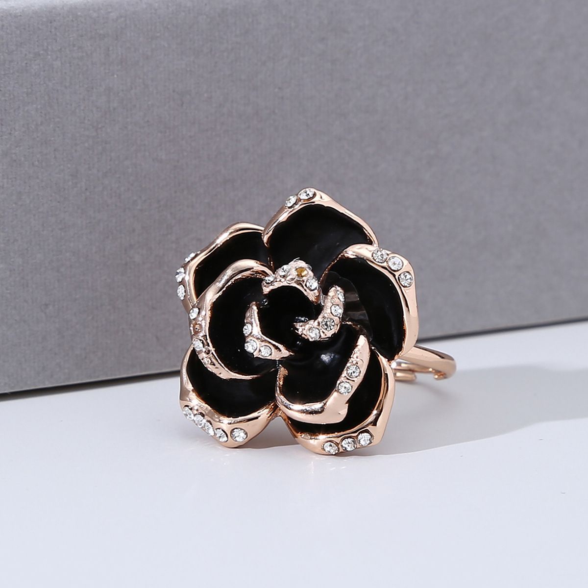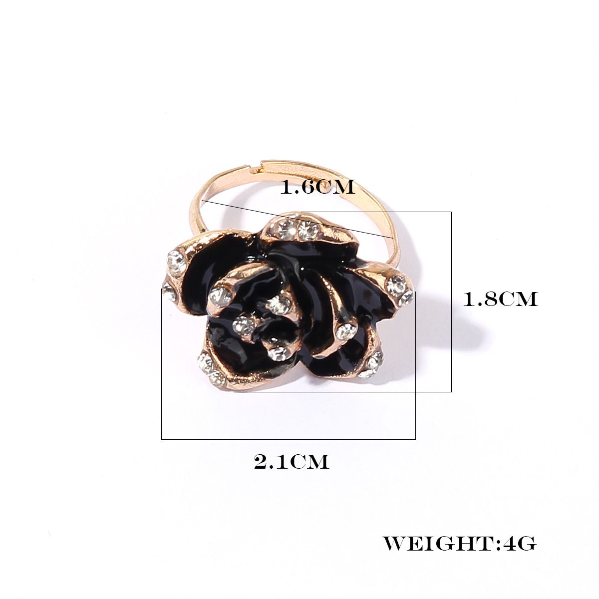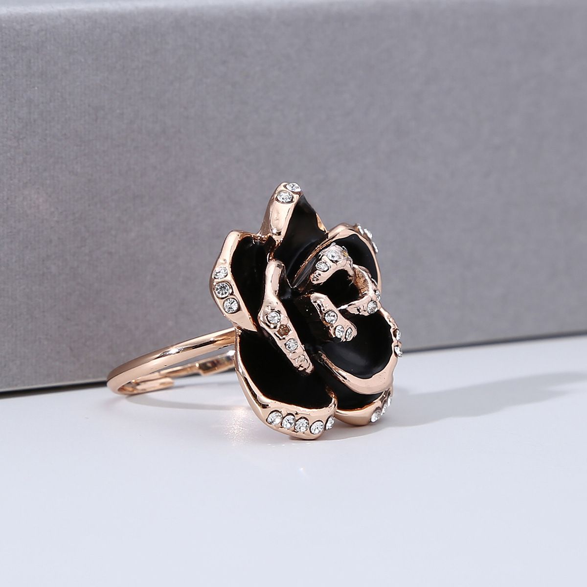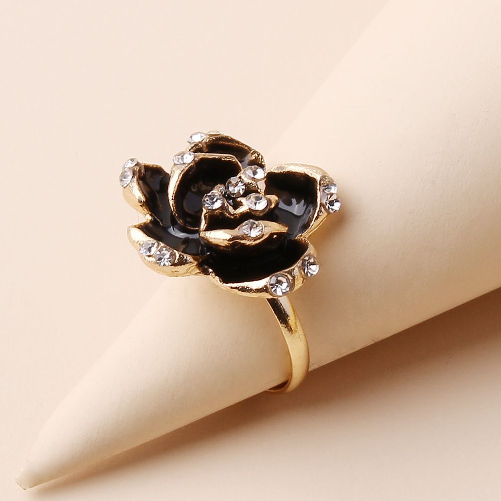 Black Rose Ring Women Alloy Open Adjustable Zircon Rings for Girls