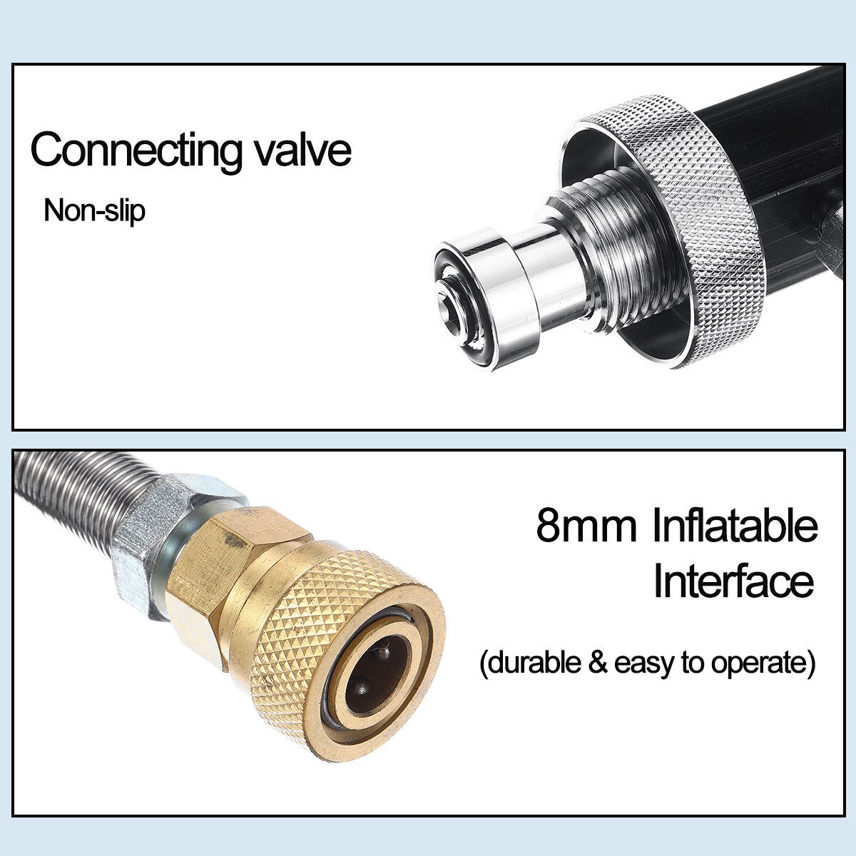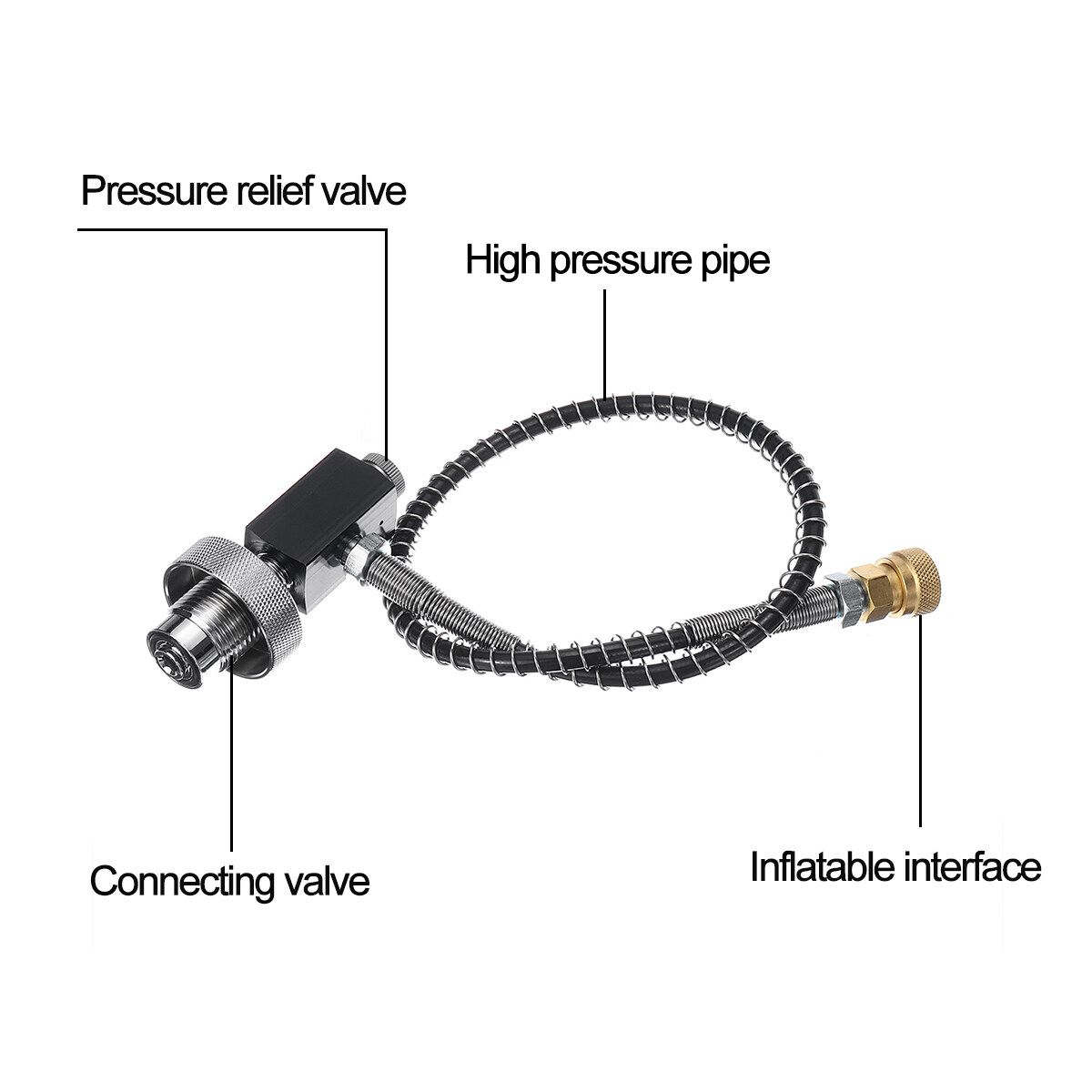 The scuba adapter is connected to the big oxygen cylinder(not included) to inflate the small oxygen cylinder(not included)